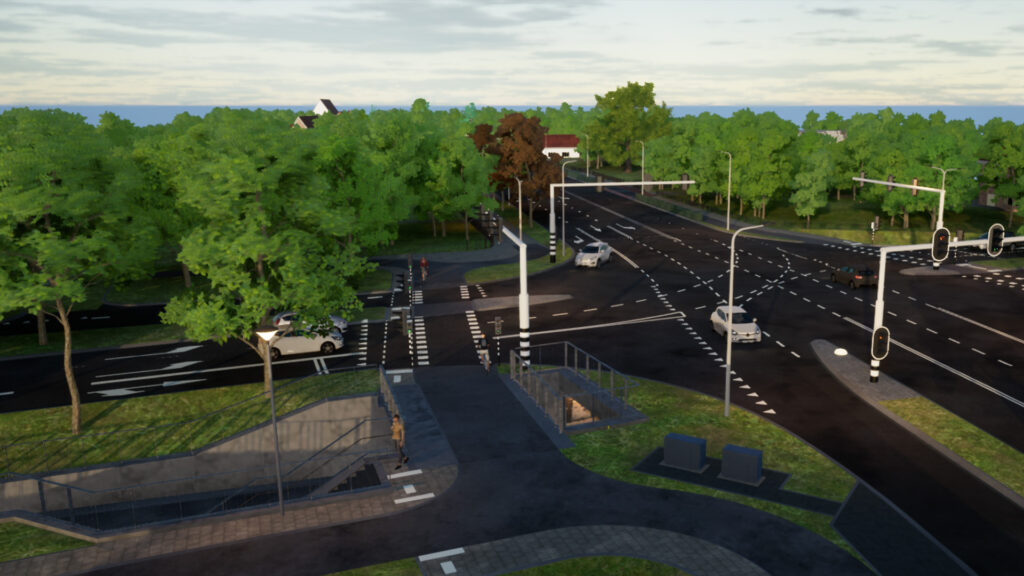 Dit ontwerp omvatte het maaiveld en de kabels & leidingen, evenals het constructief ontwerp van verschillende onderdelen binnen het project. Daarnaast stelden we 3D-modellen op van bebording, verkeersregelinstallaties (VRI) en flora & fauna. Om het project helder te communiceren naar bewoners, hebben we een animatiefilmpje ontwikkeld dat werd ingezet tijdens bewonersavonden.